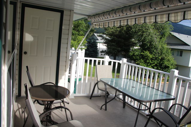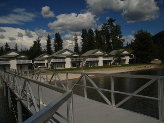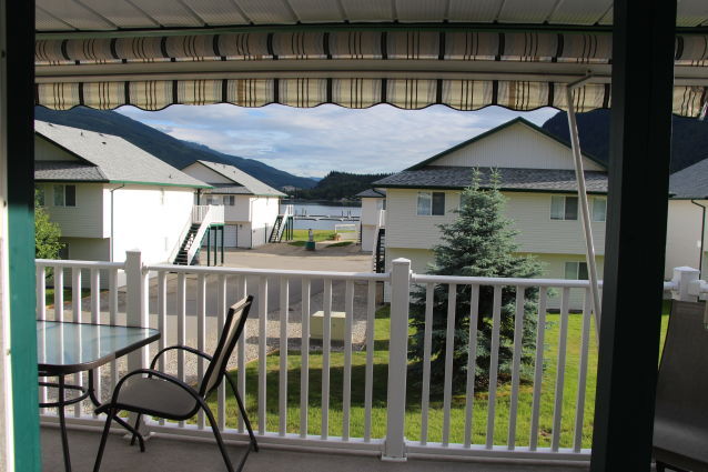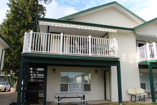 This 3rd row unit at White Pine Resort has a great VIEW plus an extended deck! It has a nice, large grassy area in front, comes with a boat slip, and is just steps from the beach. It comes with a fully equipped kitchen, dishwasher, washer/dryer, air conditioning, Wi-Fi, a Queen in the master, double/single bunk in the second bedroom, BBQ, patio furnishings, a boat slip, and room for the boat trailer in the garage. These amenities make it the best vacation home rentals Kamloops.