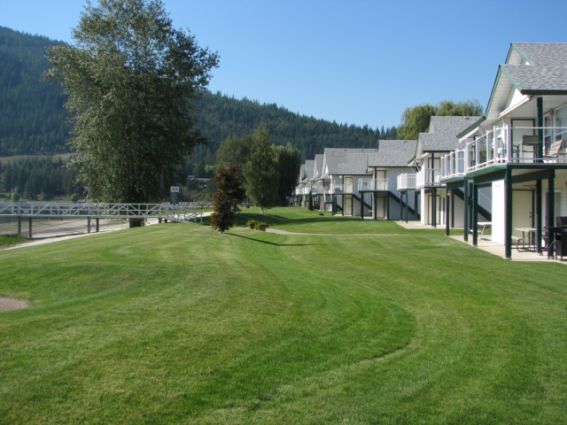 This popular 2nd row 2-bedroom plus bed setup in the garage has a Peek a boo of the lake! This unit has had many upgrades, like laminate flooring, Paint, a flat screen TV, and is tastefully decorated. This White Pine fully furnished vacation homes Vernon comes with a fully equipped kitchen, microwave, fridge, stove, WIFI, & BBQ with patio furnishings. Queen bed in the master, Queen bed in the second bedroom, and a Queen bed on the garage floor. (also room for the boat trailer in the garage. No washer/dryer. Just steps to the beach and a private boat slip for quick access to both Shuswap Lake and Mara Lake.