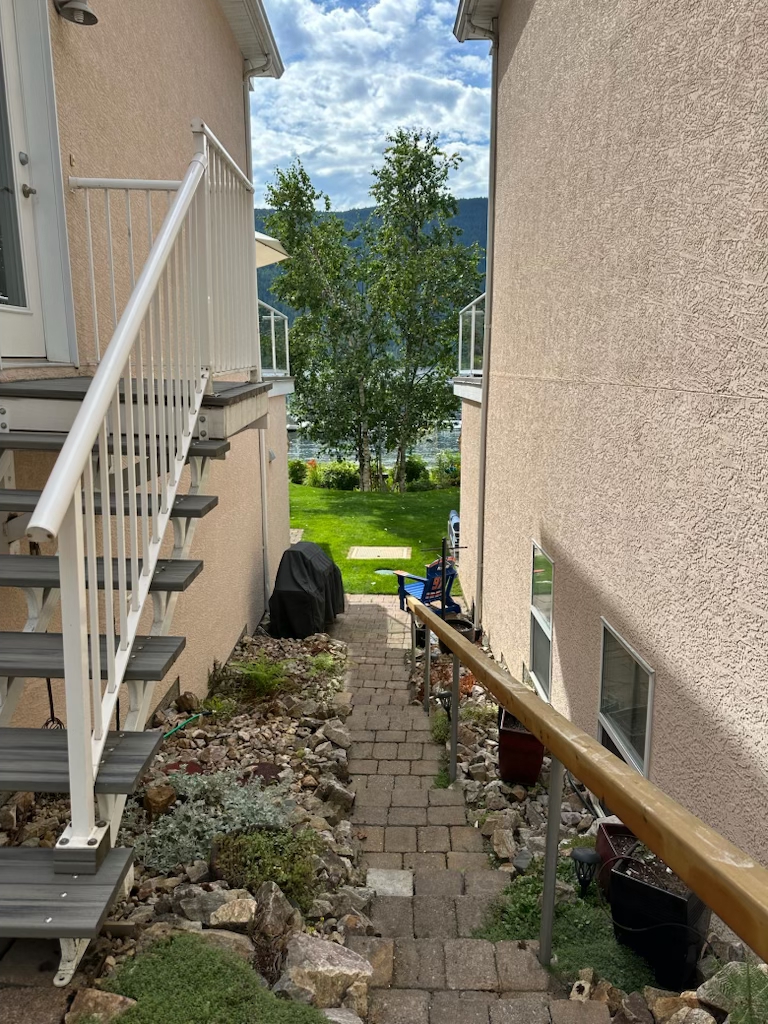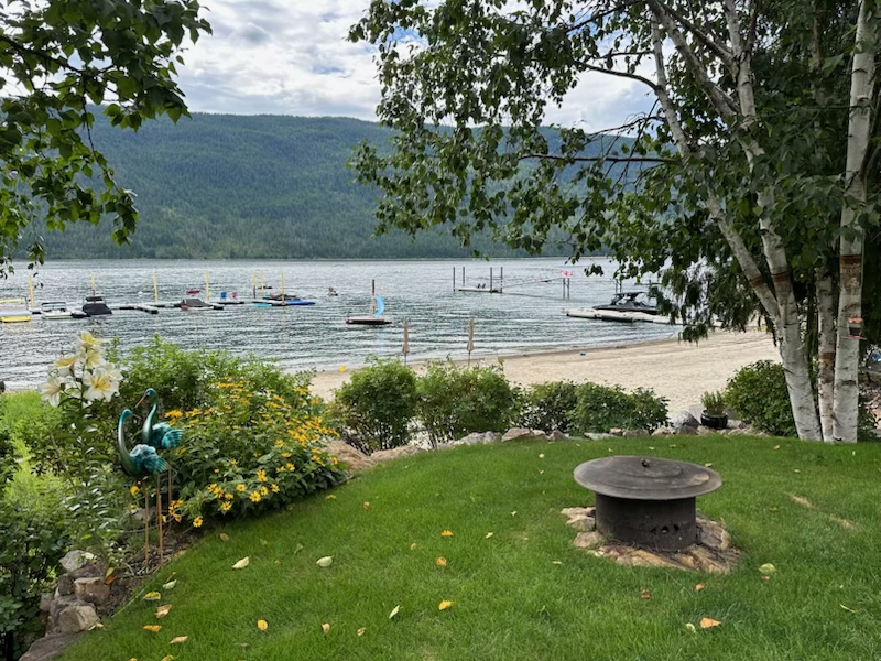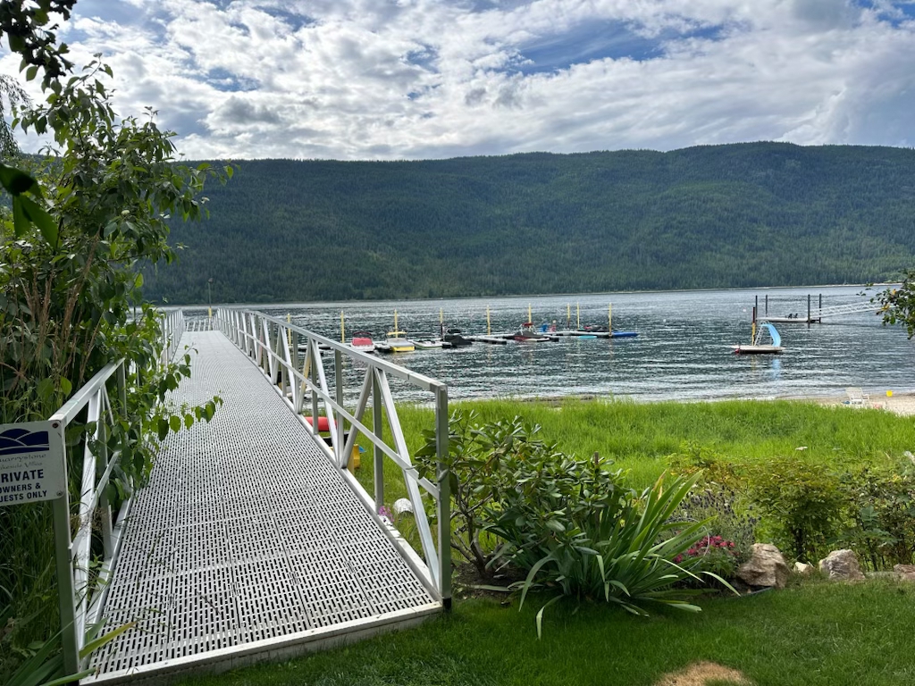 Just a short stroll down to the beach. Enjoy cooking on the grill and dining outside! It comfortably sleeps 5 guests 2 adults and 3 kids, Queen in the master, Bunk Bed single and double in the second. The kitchen is fully stocked, bedding is provided. Wifi. Washer and Dryer on suite. It features a fully equipped kitchen, dishwasher, air conditioning, Wi-Fi, BBQ & Patio area, queen in the master, double/single bunk in the second bedroom. Unit comes with a private boat slip for fun on Mara and Shuswap Lakes.